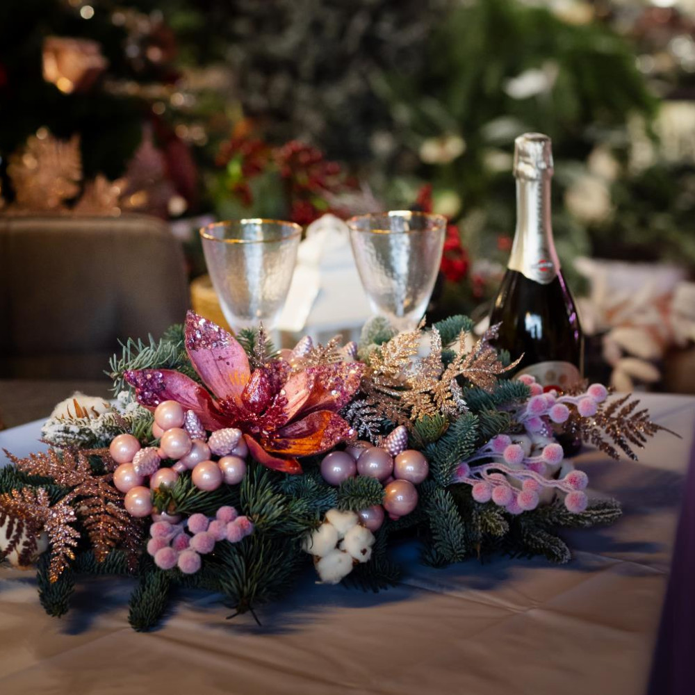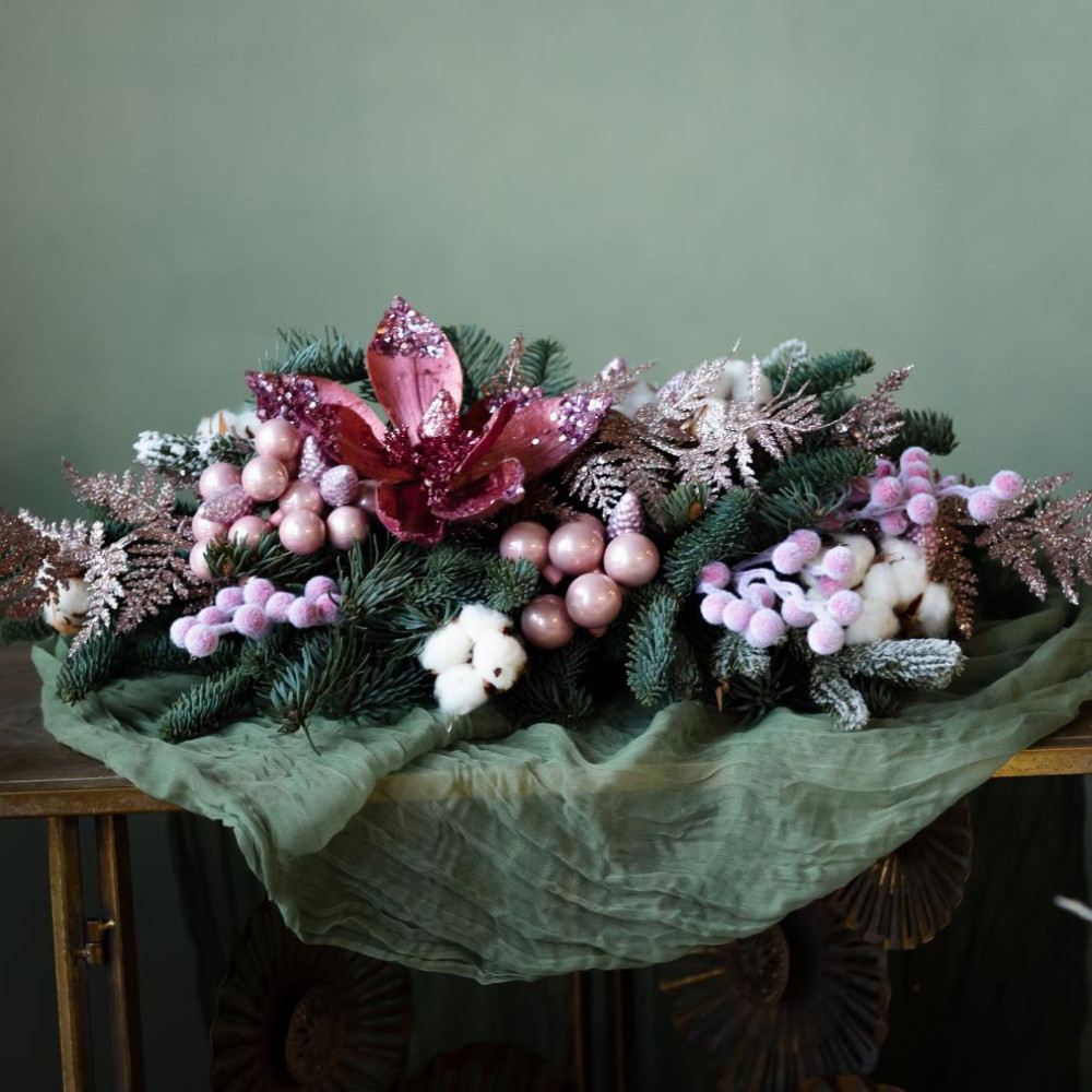 Настольная композиция — стильный акцент для интерьера или праздничного стола. Размер 55-65 см. Доступна в разных цветовых решениях.