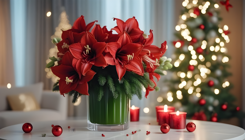 - Амариллисы — символ праздника, статусный выбор.