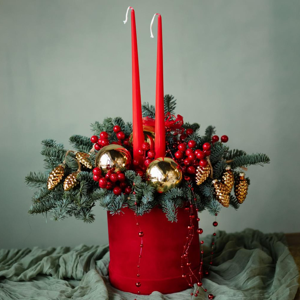 Новогодняя композиция в бархатной шляпной коробке создан, чтобы подарить ощущение праздника с первых секунд. Мягкая фактура бархата подчёркивает насыщенные оттенки цветов и хвои, а композиция будто хранит в себе аромат зимнего утра и ощущение ожидания чуда. Идеальный подарок для тех, кто ценит стиль, уют и красивые детали. Отправим Вам на согласование фотографию композиции после сборки.